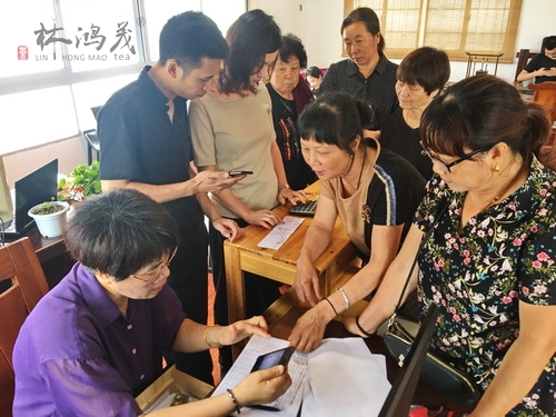 2020年6月8日,林鸿茂茶侣巴巴庄园发放采茶工资。