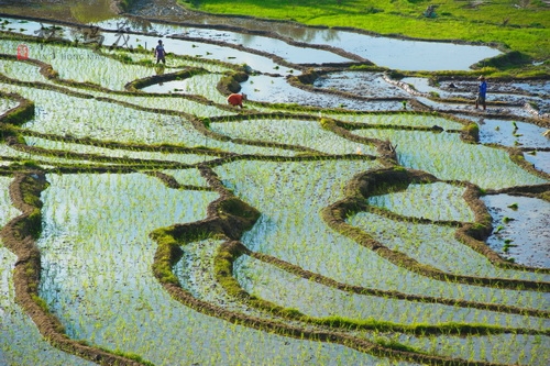 2020年6月16日,林鸿茂茶庄园种植中稻。