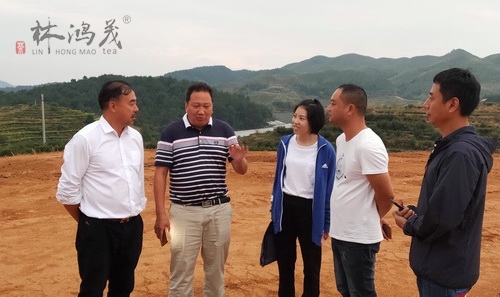 2019年10月14日,赛岐镇蔡龙玉书记率党委组织委员陈敏和郭厝坪村干部工作队前来调研推进茶侣巴巴品种园项目建设。林坛助董事长汇报建设进展。