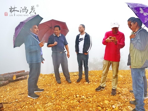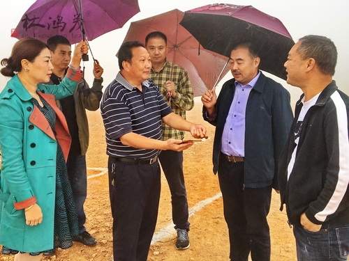2019年10月27日,赛岐镇蔡龙玉书记冒雨前来推进品种园建设。郭厝坪村包片驻村干部陪同前来,林坛助董事长、吴文玉总经理汇报进展。